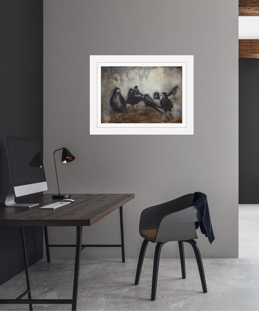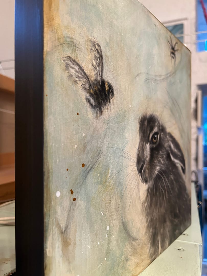 There is a story in the everyday things that surround us and every now and again she drifts between what is real and her imaginary world which brings an illustrative quality and Fairytale element to her paintings.