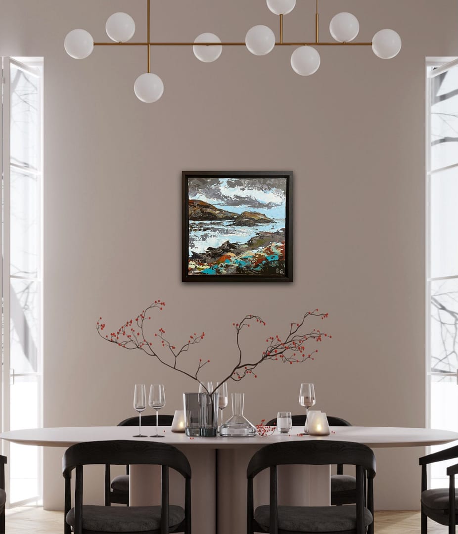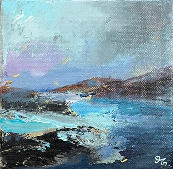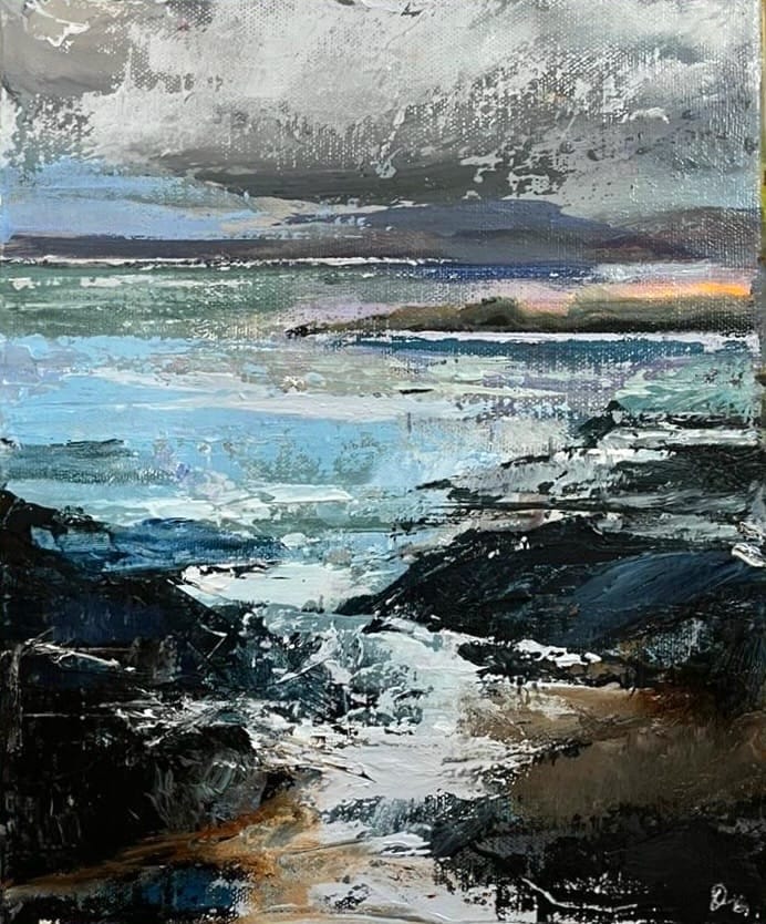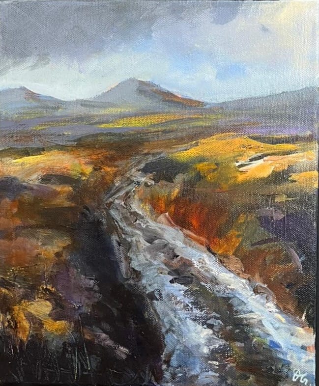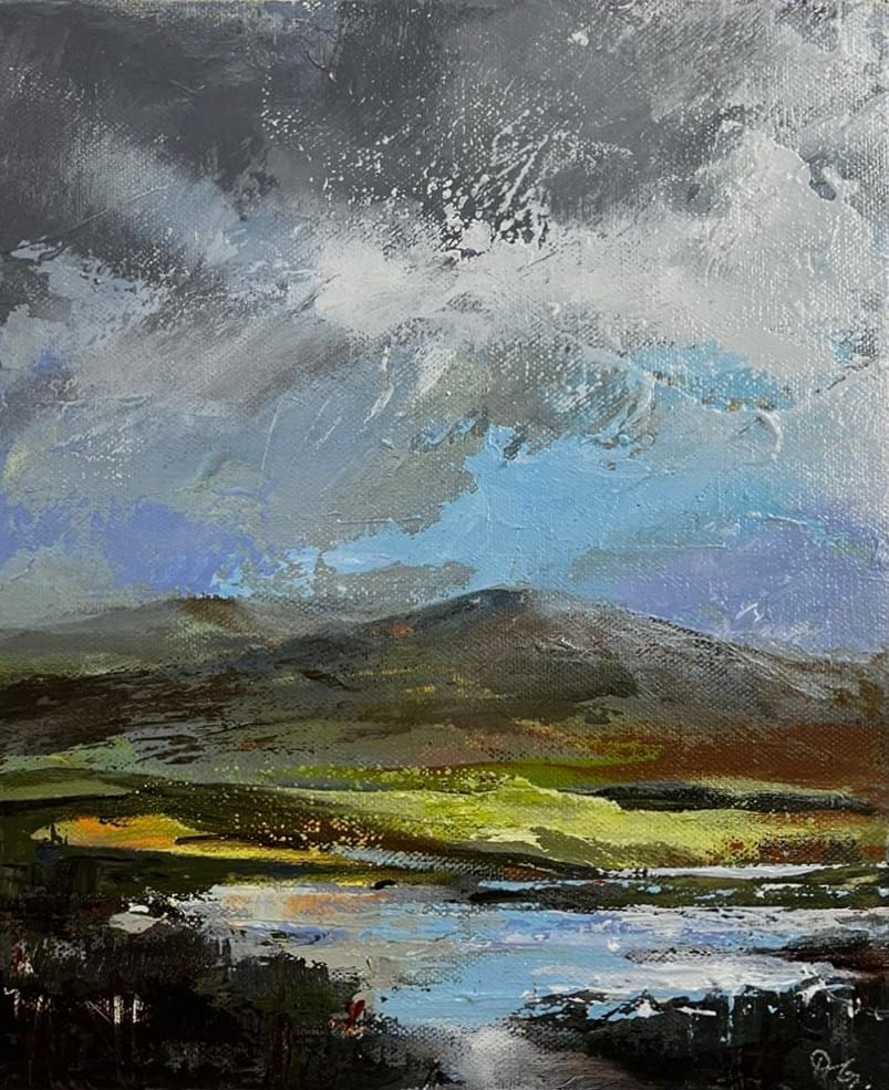 Dörte Goldammer is German artist living in Ireland since 2001. Born in 1971 in Stralsund (East Germany) she grew up surrounded by an artistic family and developed a passion for painting at a very early age. However, on leaving school, she surrendered to East German society pressure and choose a career in business instead of art, but pencils and brushes were never too far away. Her love for art had taken a back seat for several years during which Dörte concentrated on a business career and family but back in 2005 she picked up the brushes again and has been painting ever since. Her paintings are inspired by the Irish landscape: Connemara, Kerry, the Mourne Mountains and of course by the beautiful Irish coastline, reminiscent of her own home town Stralsund on the Baltic Sea. Dörte’s work also includes still-life of fruit and vegetables as well as paintings of golf courses (another passion of hers) and recenly also portraits. Over the past few years Dörte has been experimenting with different techniques. She prefers working with the palette knife. Loose layers of paint created with the palette knife give her paintings a certain vibrancy, an abstracted feel and her skies a turbulent movement. The choice of colours give an atmospheric sense of the ever-changing Irish landscape. In 2017 and 2018 Dörte’s paintings were selected for The Gerard Manley Hopkins Festival and international Art Exhibition in Newbridge, Co. Kildare. Her first solo show took place in November 2018 at Luttrellstown Castle Golf, Dublin. A further selection of her paintings can currently be found in The Kildare Gallery at Carton House, Maynooth. In the past she also exhibited in Green Acres, Wexford and the Draiocht Art Gallery, Adare.