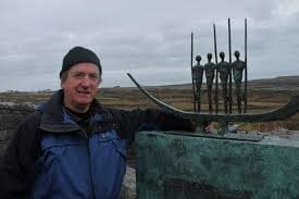 His Lawrencetown piece, which was commissioned by the Galway County Council, is a seven- foot bronze piece depicting the story of Diarmaid and Gráinne. He was commissioned by the Galway Chamber of Commerce to design the Paddy Ryan Memorial Medal which was presented to the speaker at the first Paddy Ryan Memorial Lecture at NUI Galway in 2007. He has also had work commissioned from the Irish National Parks & Wildlife Service over the years. His work is in great demand for book covers and illustrations, and he has recently created a series of striking wall hangings done in the studio of V’Soske Joyce, now Dixons Carpets, Connemara.